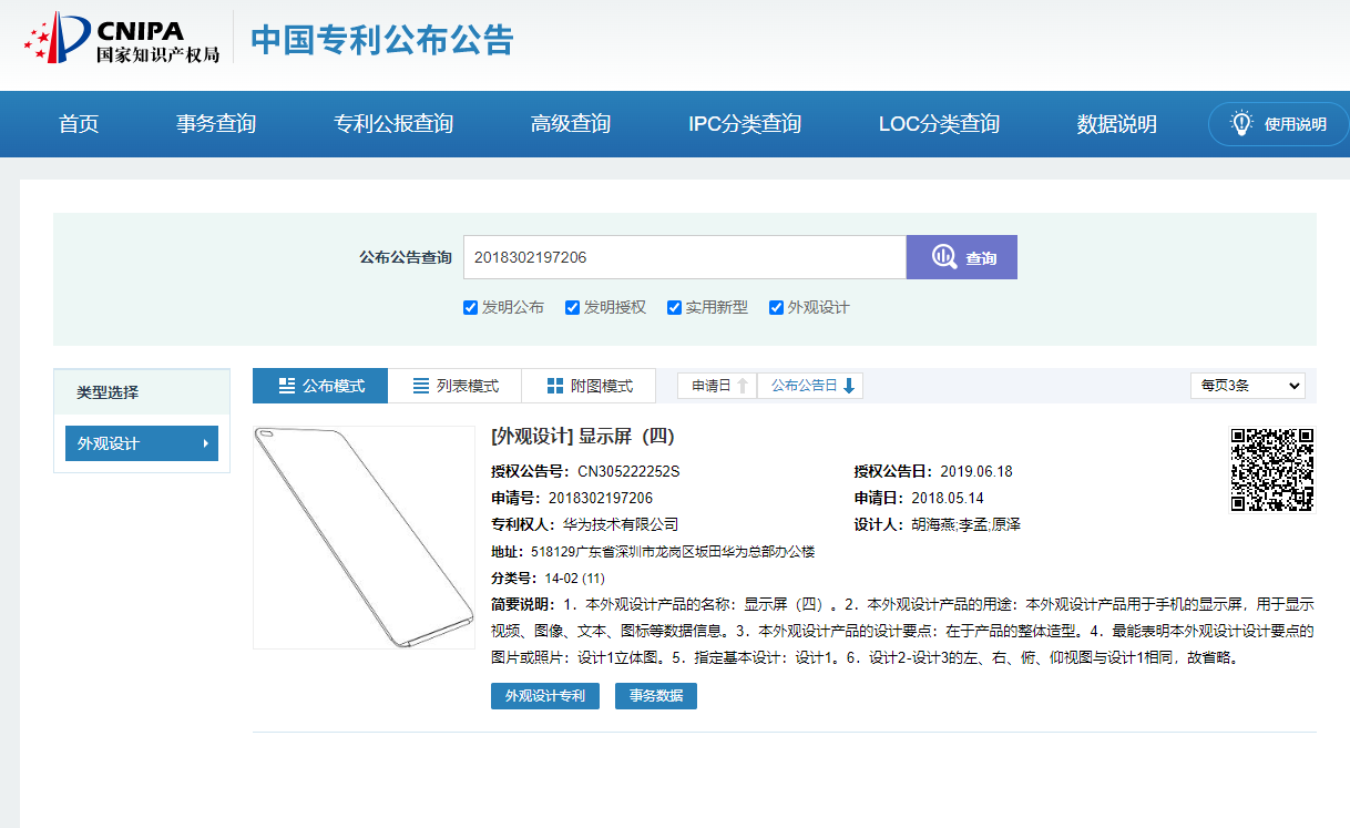 值得一提的是,华为早在5年前就已申请过屏幕挖孔的各形态外观专利。