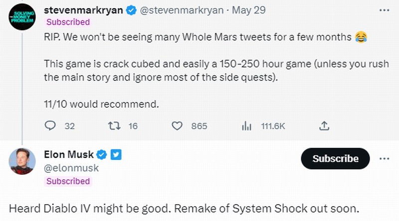 其实马斯克并不是因为《暗黑4》第一赛季上线才跟风加入游戏,在该作还未开卖时,他就对这款游戏表达了期待之情。此外据说他还在玩《守望先锋2》,并且很喜欢《网络奇兵:重制版》。