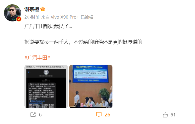 有博主爆料称,广汽丰田将要进行大裁员,规模涉及一两千人,不过对于裁员补偿,广汽丰田做的还挺厚道。相关照片显示,有员工吐槽称,他白天还在上班,晚上就收到了裁员的短信。而在裁员相关会议上,广汽丰田方明确给出了裁员补贴标准。
