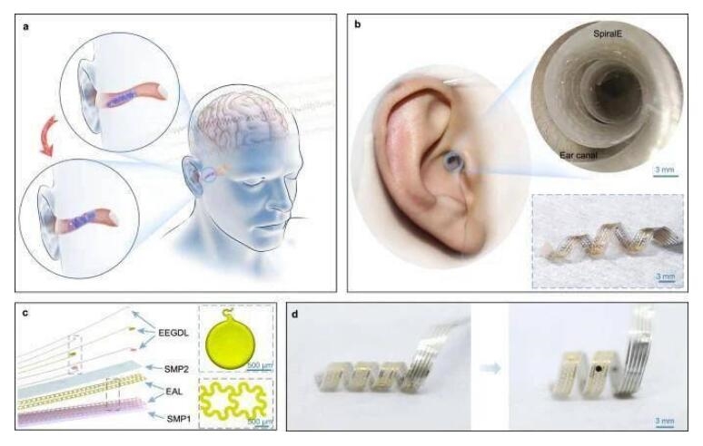 清华大学研究团队最近开发出一种新型脑机接口,名为SpiralE BCI,该传感器采用“入耳式”设计,使用者只需要将传感器插入耳道,即可读取相应脑电波信息。据悉,该传感器由柔性材料制成,采用了螺旋设计,可以在电驱动下沿着耳道自适应地贴合耳道,从而不影响使用者听力。
