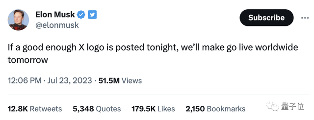 如果今晚就有足够好的X Logo发布,我们明天就会在全球范围上线。