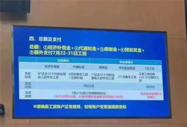 而非法定部分包括感谢金、年中奖金预发、7月工资等。其中,感谢金为过去12个月的平均工资,年中奖金预发为2个月的基本工资,7月份工资正常结算外加22-31日额外工资。