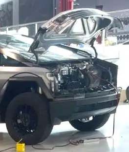 这个功能可以让前置行李箱在腰部高度打开,方便装卸物品。但是,Cybertruck的前置行李箱看起来非常小巧,甚至没有内部塑料件。相比之下,福特F-150 Lightning的前置行李箱则非常宽敞,可以容纳很多东西。
