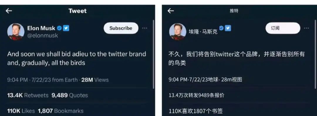 用X代替Twitter商标,并不是一件简单的事。或者说,马斯克在推翻一个已经深入人心的Twitter品牌之后,可能会花费很长一段时间来进行品牌重塑。