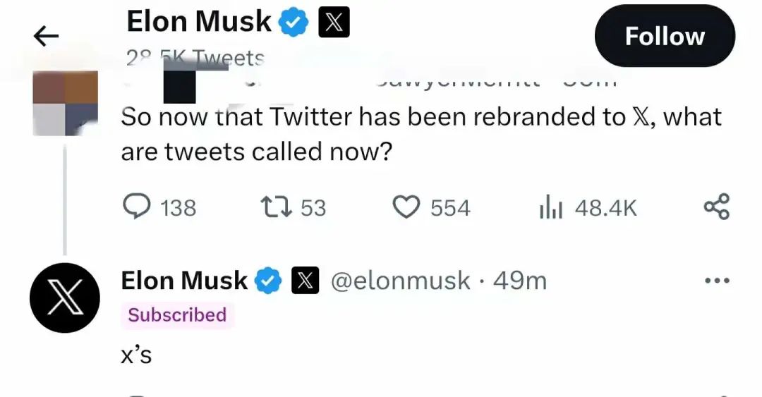 网友们虽然对Twitter有情结,但是马斯克对”X“却情有独钟。