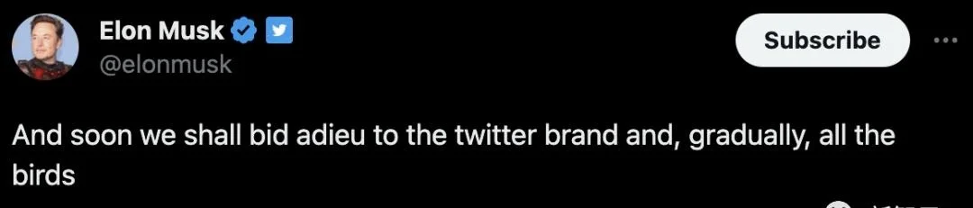 “很快,我们将告别Twitter这个品牌,并且逐渐告别所有鸟类。”