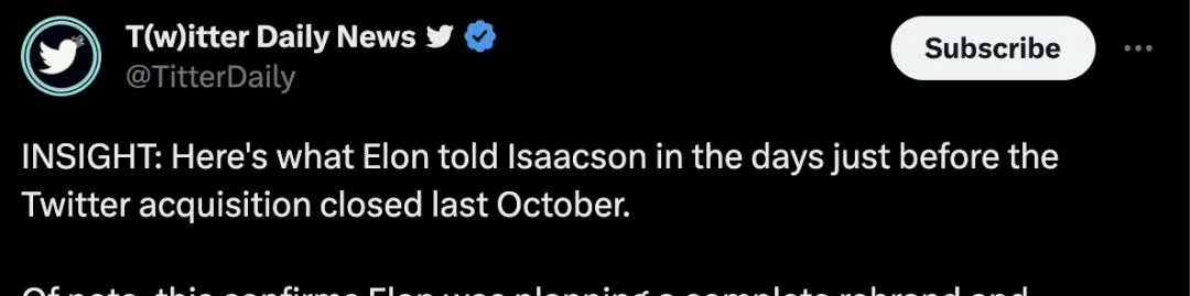 这段话,更加证实了马斯克从一开始就计划彻底重塑品牌,并更名为 X。