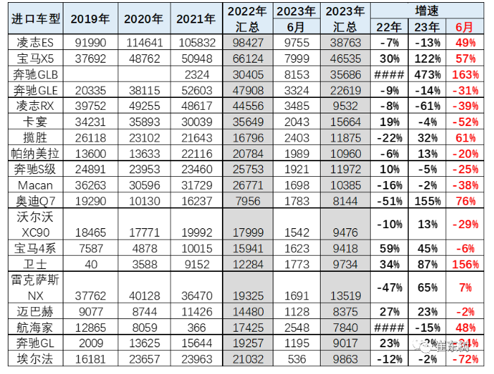 前几年进口车品牌表现相对最强的是雷克萨斯,近期下滑严重,2023年上半年累计进口销量下滑20%,排名从第一跌至第三。