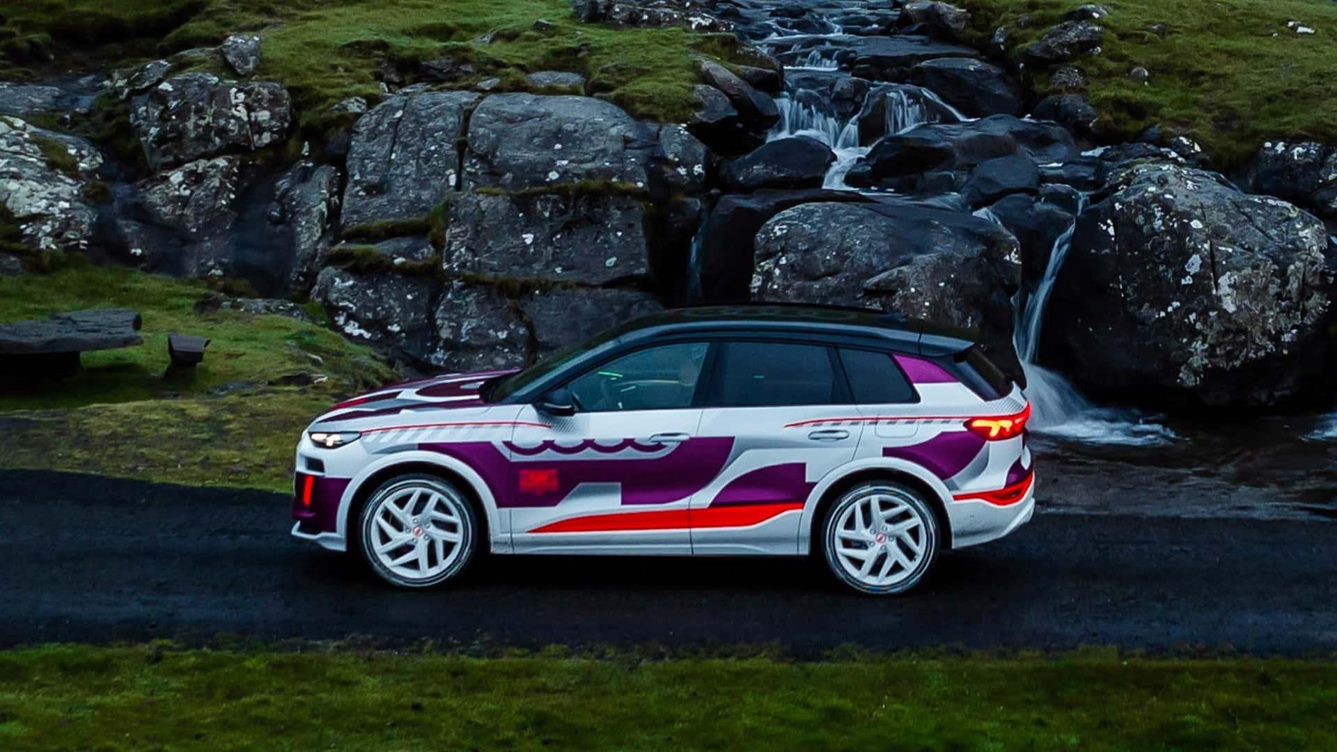 外观方面,新车新车采用电动车常见的封闭式格栅设计,前脸为奥迪家族式电动化设计语言,两侧大灯则为分体式,在其下方配备有通风口,其他细节,有车身覆盖有伪装拉花,所以看不具体。