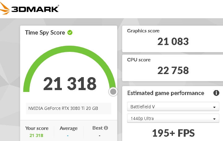 3DMark Time Spy实测分数21083,12GB版本则一半不到2万分。