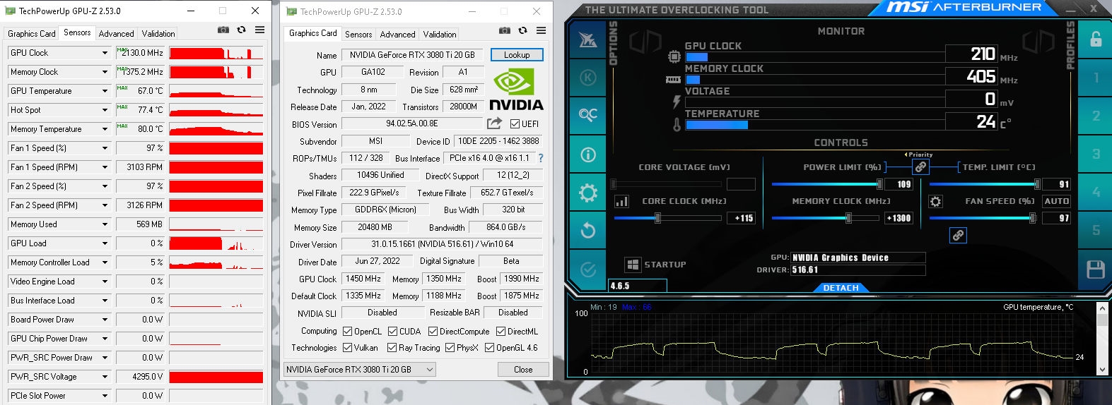 神奇的是,它居然可以超频,核心能达到1450-1990MHz,显存可以加到21.6GHz。
