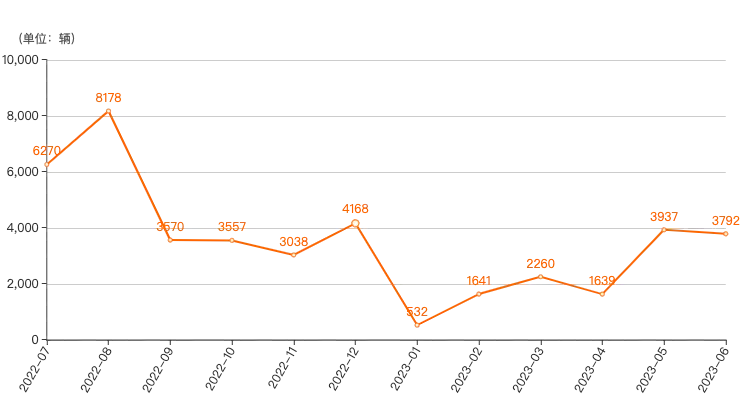 从 2021 年开售至今, ID. 3 的最高月销量是 2022 年 7 月的 4611 台,最低是 2022 年 2 月 1012 台,长期徘徊在 2000 台左右。今年上半年, ID. 3 总共卖出了 13665 台,是比亚迪海豚 6 月销量( 26408 台)的一半。