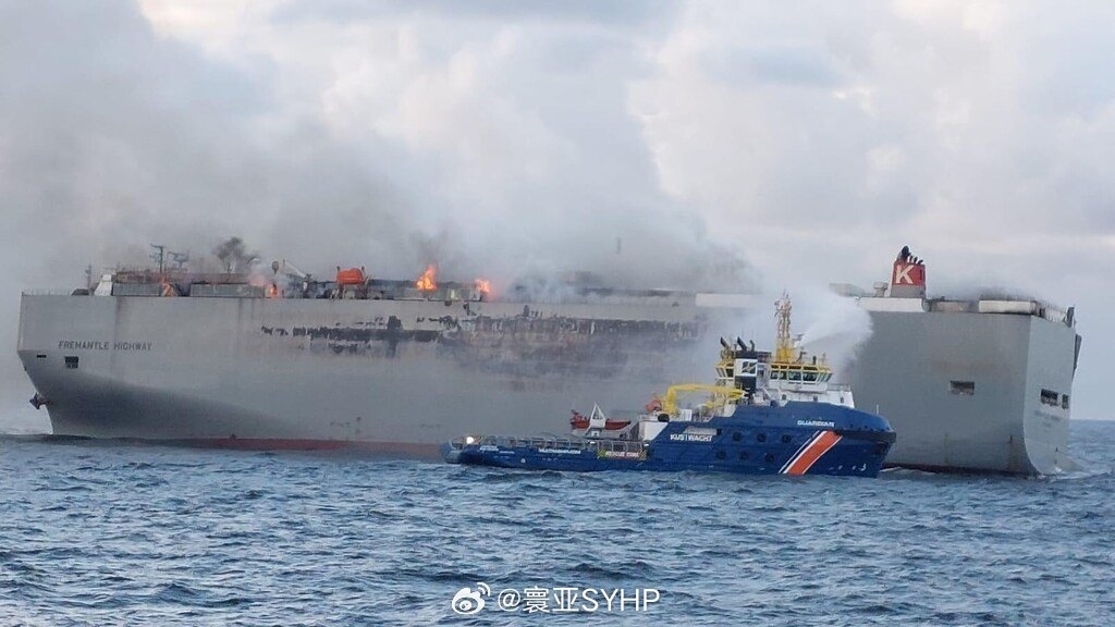 据了解,事件发生在荷兰北部阿默兰岛以北,滚装船在巴拿马注册,船身长199米,船上载有约3000辆汽车,其中包括电动车,按计划将从德国开往埃及。
