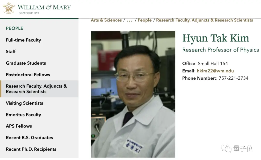 其中的协作者之一Hyun-Tak Kim,是美国威廉玛丽学院的物理学教授,主攻凝聚态物理、量子信息科学领域,论文引用量已超8000次。