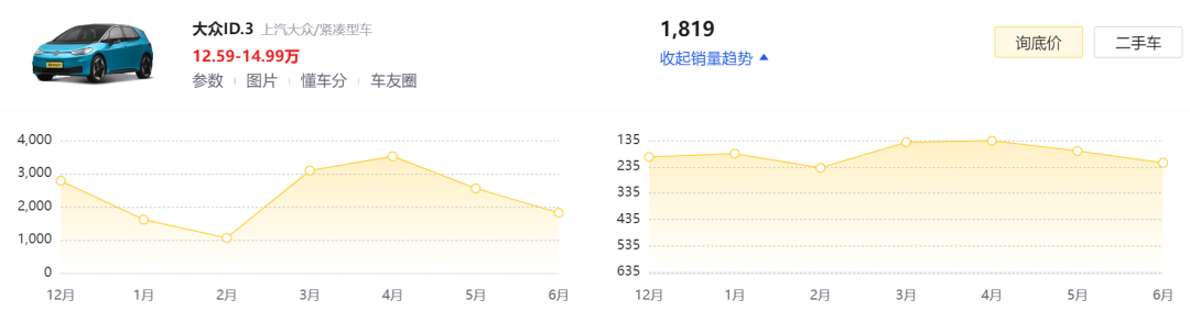然而和神挡杀神的海外战绩截然相反,大众 ID 在国内的销量真就只能用三瓜俩枣来形容了。