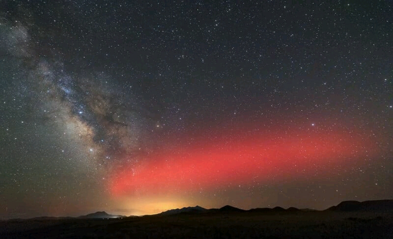 近日,一名摄影师拍到了一枚火箭击穿地球大气电离层后留下红色余辉的壮观场景。这枚火箭是来自SpaceX的猎鹰9号,二级发动机排放的气体快速撞击电离层,使得其中的氧离子与火箭排放物结合,释放出了红色的光芒,和极光产生的原理一样。