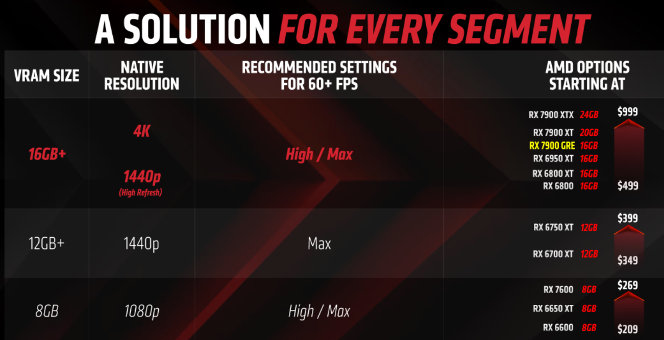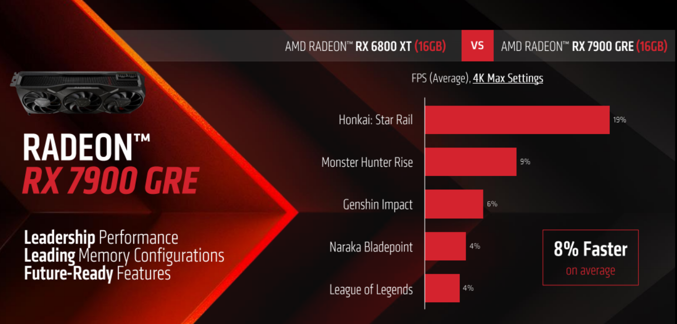 RX 7900 GRE的定位是面向2K/4K分辨率、高画质游戏,2K分辨率下还客户享受高刷体验。