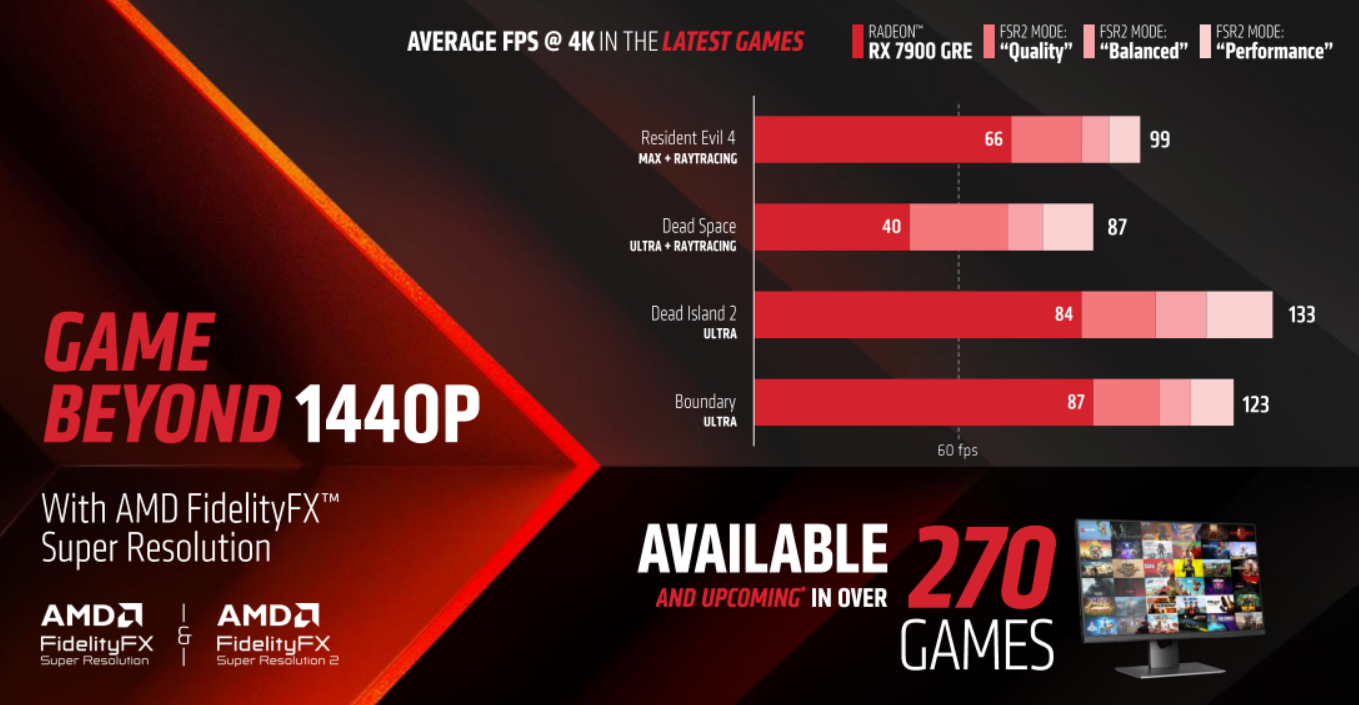 FSR技术现已得到270多款游戏的支持,其中FSR 2的已达81款,不过FSR 3依然停留在纸面上,HYPR-RX技术又做了介绍但依然也没有确切的落地时间。