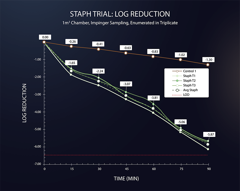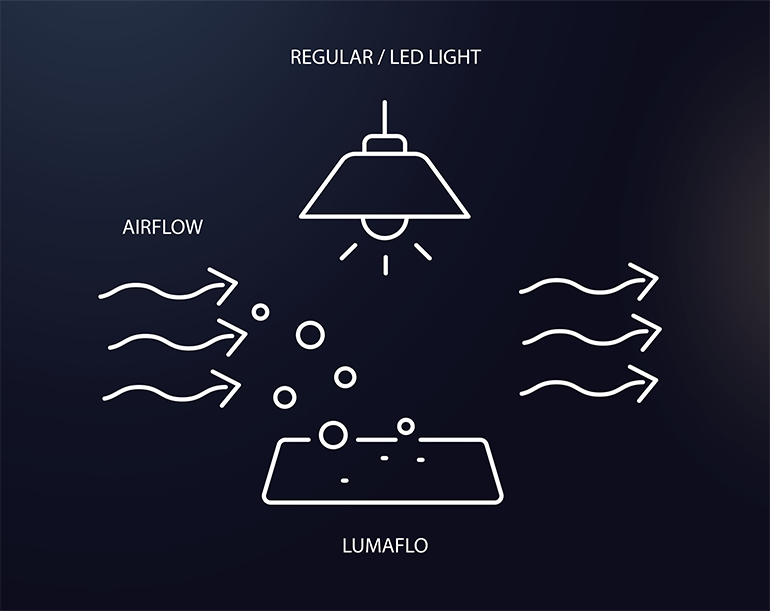 在堪萨斯州经 FDA 批准的气溶胶研究与工程实验室(ARE)进行的测试中,LumaFlo 箔据称可在 90 分钟内消灭 99.997% 的空气中的葡萄球菌。美国环保署对高效空气过滤器的最低要求是 99.97%。此外,由于空气只需经过材料而不是穿过材料,LumaFlo 的运行速度比基于过滤器的系统快六倍。
