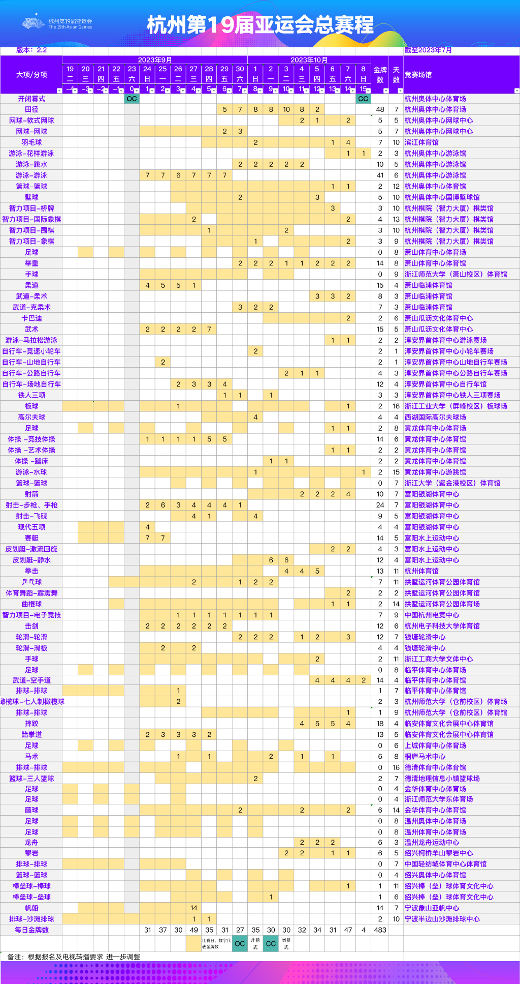 今日(7月29日),杭州亚运会总赛程2.2版正式发布,其中智力项目-电子竞技将从9月24日开始持续至10月2日,共9个比赛日,将决出7块金牌。其中七个电竞项目为:英雄联盟、王者荣耀(亚运版)、和平精英(亚运版)、刀塔2、梦三国2、街霸5和FIFA Online 4。中国代表队将参加英雄联盟、王者荣耀(亚运版)、和平精英(亚运版)、刀塔2、梦三国2和FIFA Online 4六个项目奖牌的角逐。