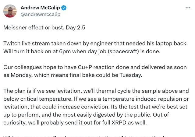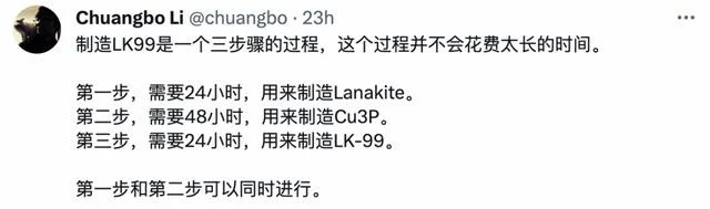 当然,他也表示,固态合成过程中有太多未知的参数,可成功复现的几率很低。他猜测,在提速、退火和实验环境上,一定存在一些秘诀。