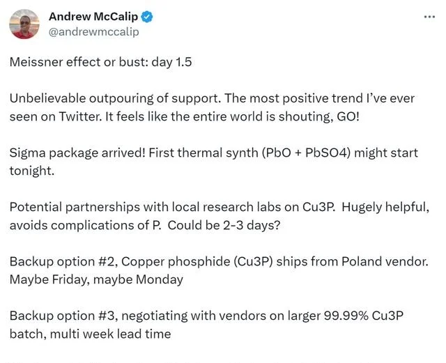 因为韩国团队合成室温超导的材料——铜、磷、铅如此常见,毫不意外地,有条件的实验室们纷纷开启复现狂潮。