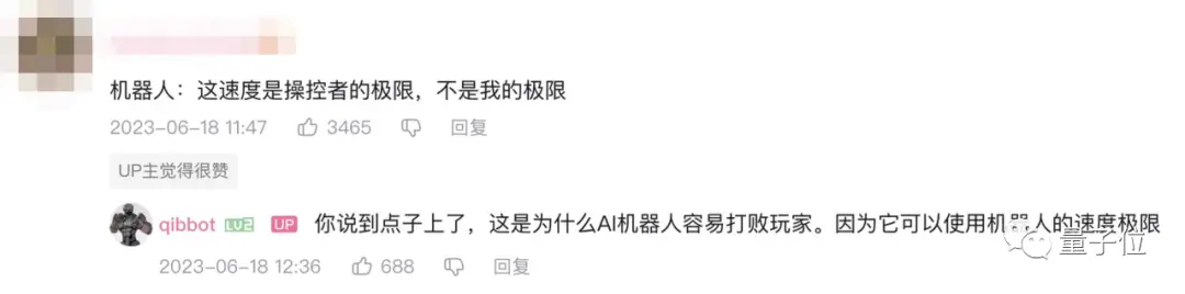 对QIBBOT速度快这一点,B站网友们纷纷表示认同,甚至认为操控者的速度才是机器人速度的极限: