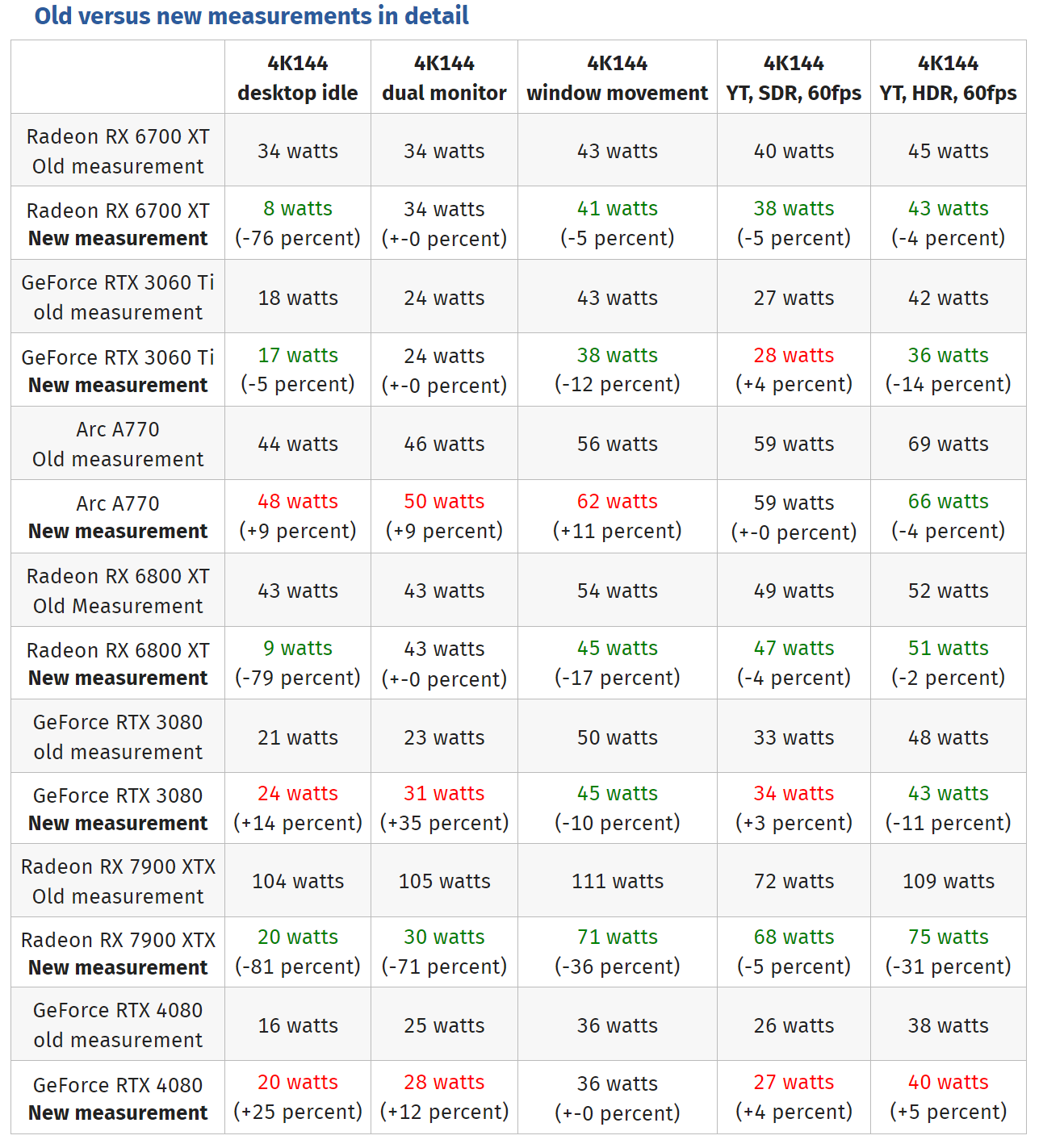 AMD RX 7000系列显卡推进速度缓慢,性能、能效也缺乏竞争力,还经常闹出各种Bug,比如说待机功耗偏高,尤其是在高分屏、多屏系统中。近日,德国同行ComputeBase在对显卡功耗进行重新测试梳理的时候,就特意拿RX 7900 XTX搭配4K 144Hz高分高刷显示器进行了测试验证。