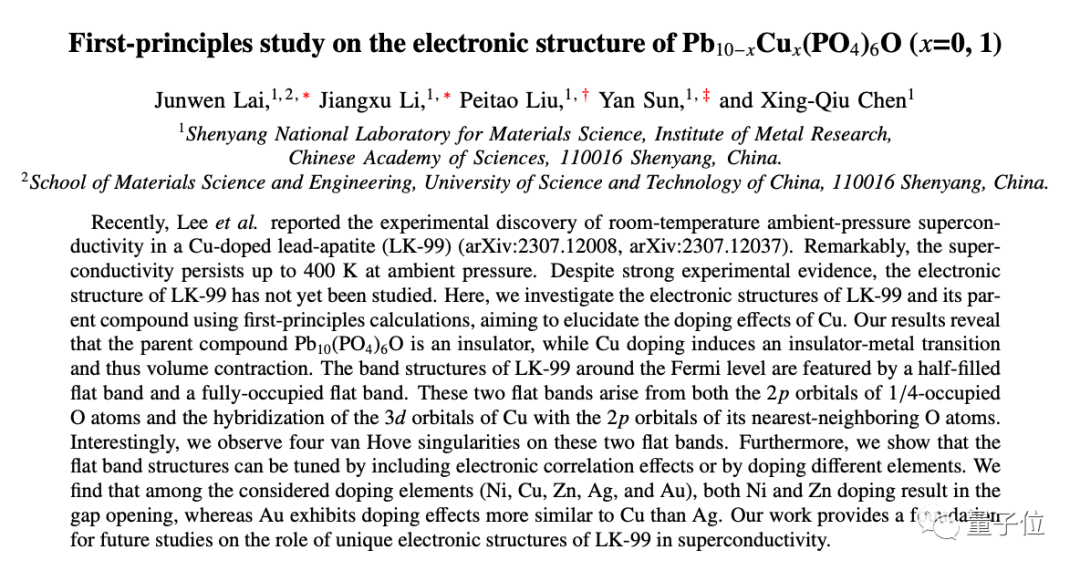 理论一边,中科院沈阳所与美国劳伦斯伯克利国家实验室又分别发表了支持LK99可能存在超导效应的理论研究。