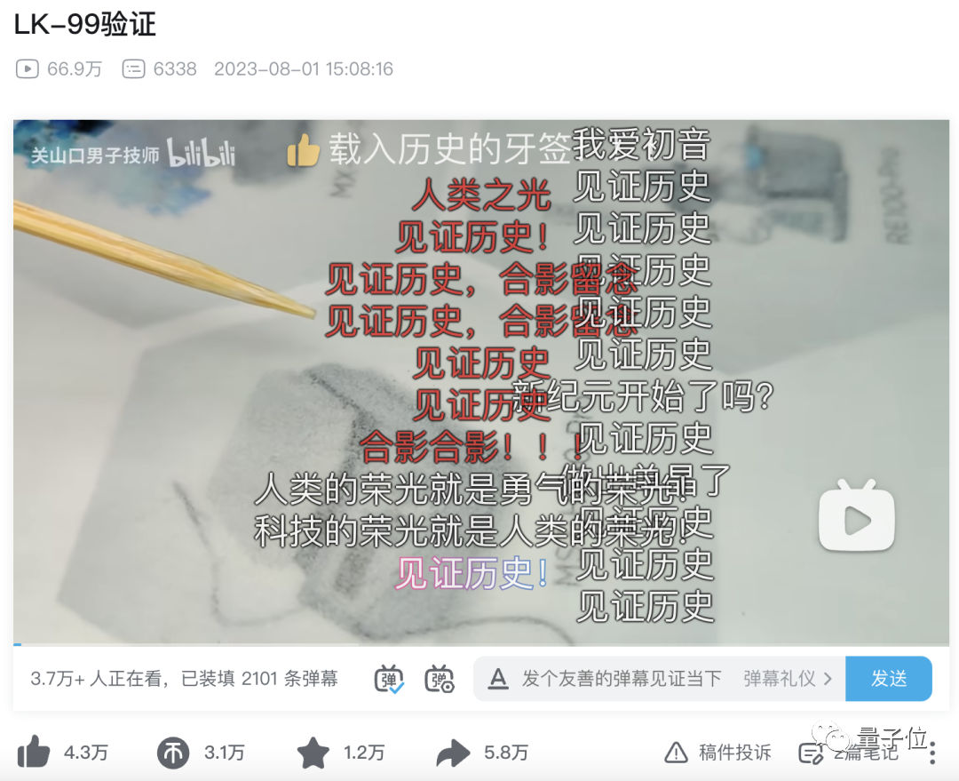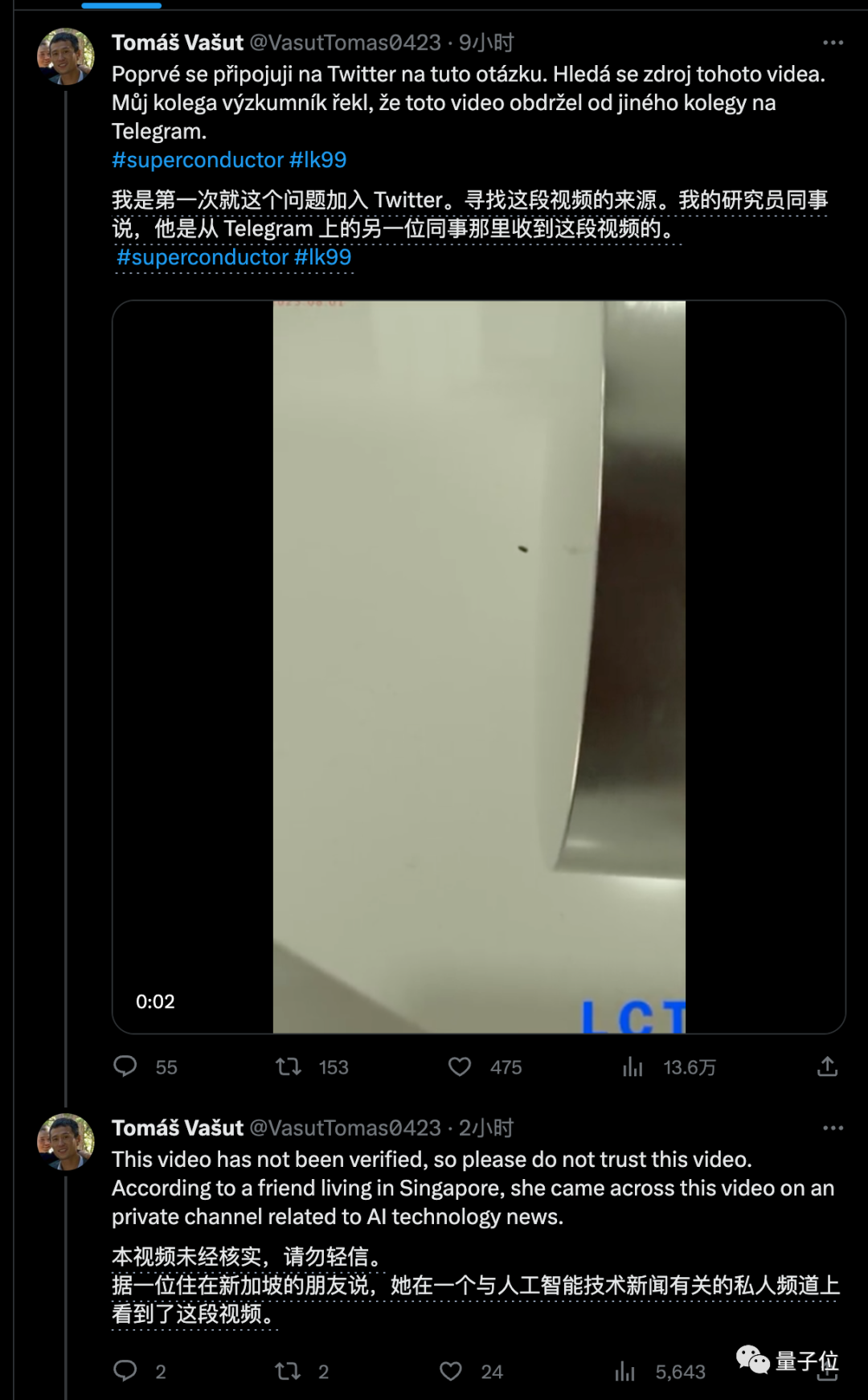 实验一边,B站华科团队、知乎“半导体与物理”分别上传了样品半磁悬浮现象视频。