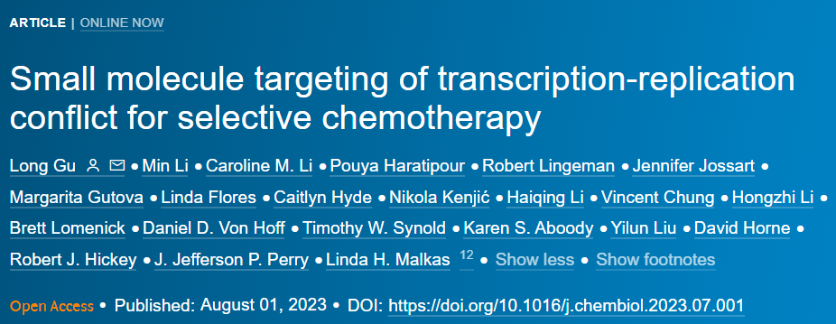 癌细胞的快速增殖使得细胞内部经常存有因DNA复制所引起的压力,而引起DNA复制压力的事件之一便是复制和转录之间的冲突(Transcription Replication Conflicts,TRC),即负责基因表达和基因组复制的两个关键细胞机器在相同的基因组位置上产生相互碰撞,这是造成内源性DNA双链断裂和基因组不稳定的主要原因(因此癌细胞中常带有受损的DNA)。癌细胞的这项特征也被应用于许多抗癌策略当中,通过在癌细胞中引入更多的DNA破坏,可以对癌细胞造成灾难性损伤而导致其死亡。增殖细胞核抗原(PCNA)是一种存在于所有真核细胞中的蛋白质,因其在DNA合成和修复中发挥的关键作用,PCNA被广泛用作肿瘤进展的标志物,也被视为一个潜在的抗癌靶点。