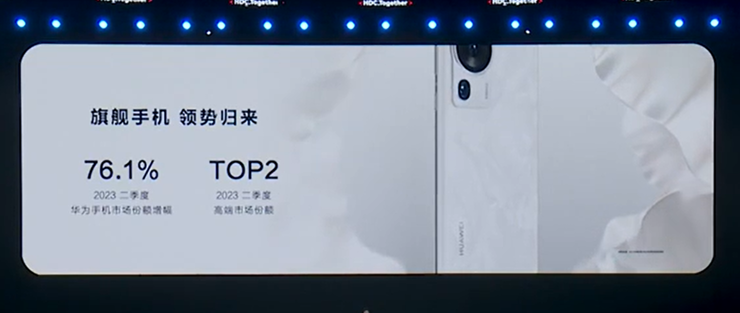 今天下午举办的华为开发者大会HDC2023上,余承东登台发表主题演讲。发布会一开始,余承东公布了一组数据——2023年的第二季度,华为手机市场份额增幅高达76.1%。该季度,华为高端市场份额跻身TOP2。