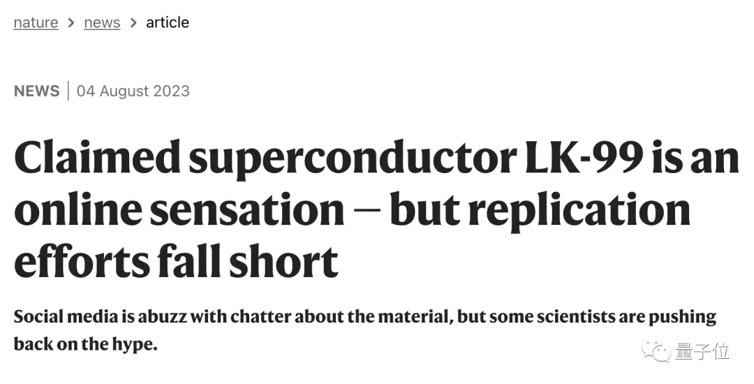 现在,就是大哥搓出LK-99的同天,Nature也发了篇相关文章,主题是让大家稍微冷静冷静——