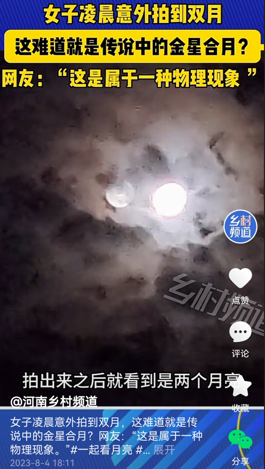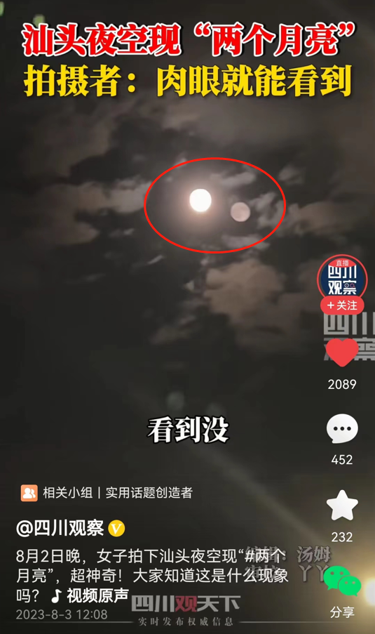 当然,我也不排除在一些极特殊的环境下,可能会造就视频中那种样式的两个月亮,但是这么多不同地方都拍到了,我觉得是不可思议的。