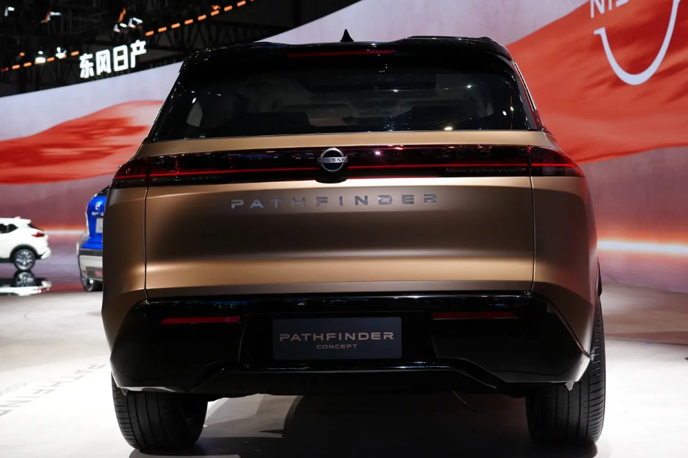 来到车尾,贯穿式尾灯、日产品牌LOGO和尾灯下部的Pathfinder标识都能一起点亮,有种未来科幻感。