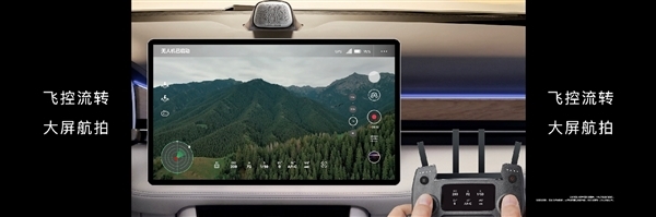 超级桌面还能接入无人机的手机应用,用户可以在座舱大屏观看航拍影像,躺在车中与家人朋友同享更广阔的风景。