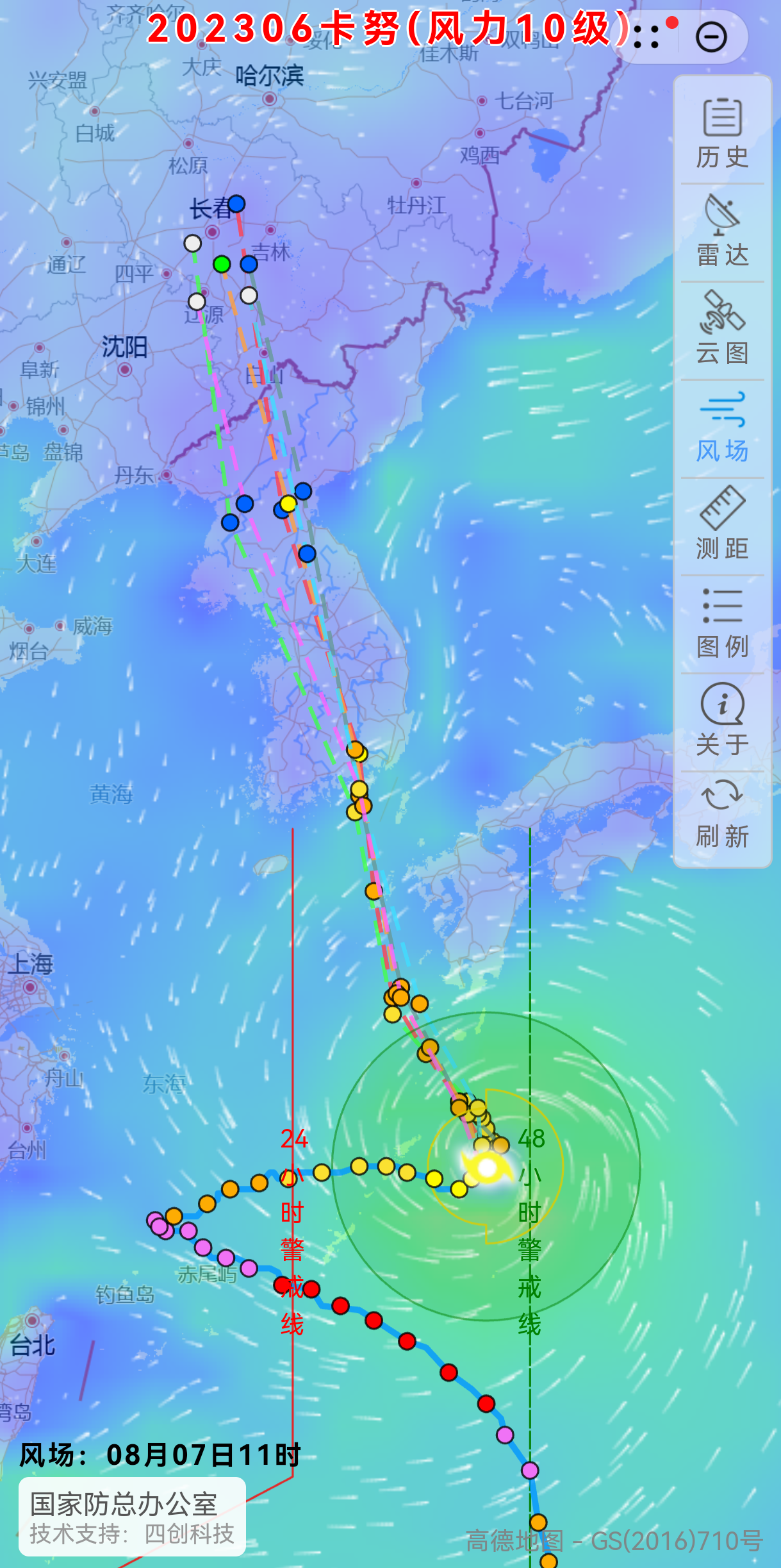 但是,太平洋副高又迅速加强,导致“卡奴”再次原地逗留,而在副高西侧偏北气流的引导下,“卡奴”正准备再来一个直角拐弯,改为北上,掠过日本,奔向韩国、朝鲜,有可能8月11日前后进入我国东北地区。