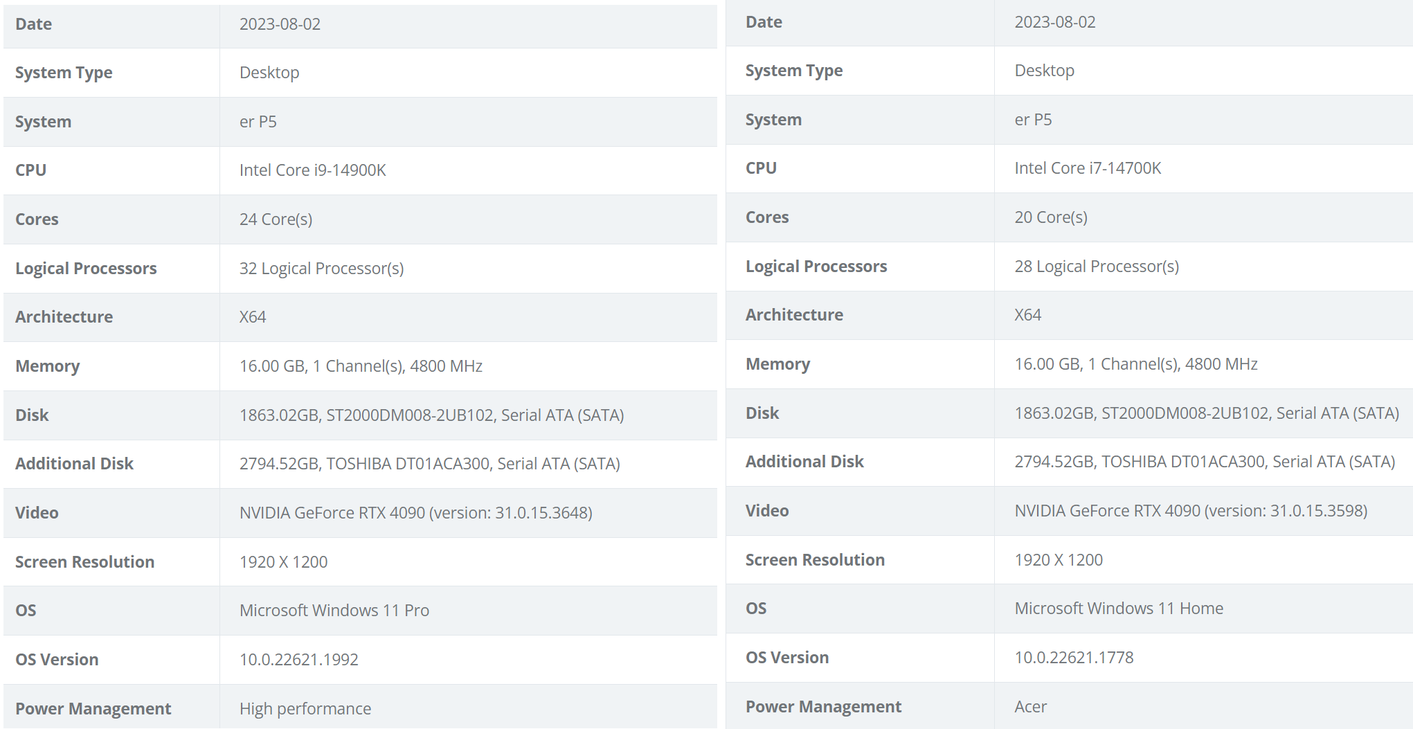 同样的平台上,i9-14900K相比于i7-14700K的性能高了14-20%,差距很合理。