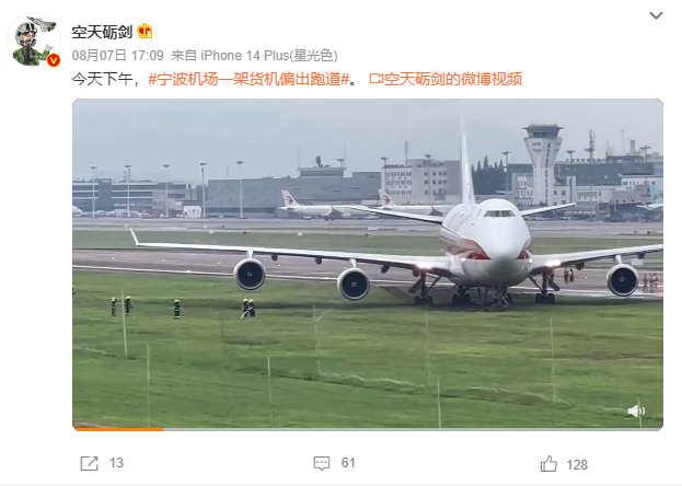 由此来看,今天18时前宁波机场的航班全部取消的原因应该还是因为这架波音货机偏出跑道。