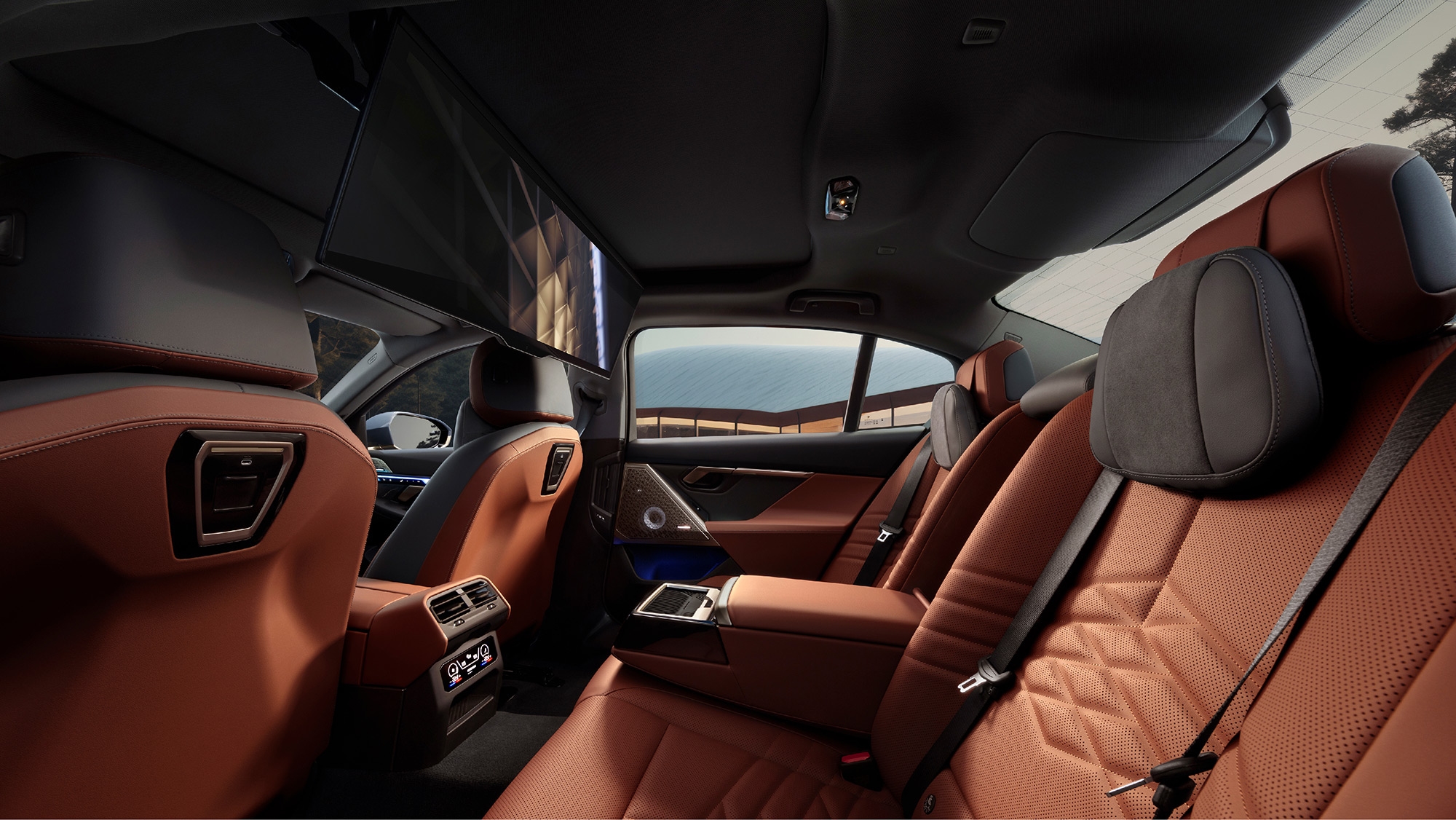 值得一提的是,该车还就后排针对国内市场进行了优化升级,比如将配备后排悬浮式巨幕,实际上就是大哥i7的下放,其尺寸达到31英寸,分辨率为8k,支持实时联网,而海外标轴版则无此待遇。