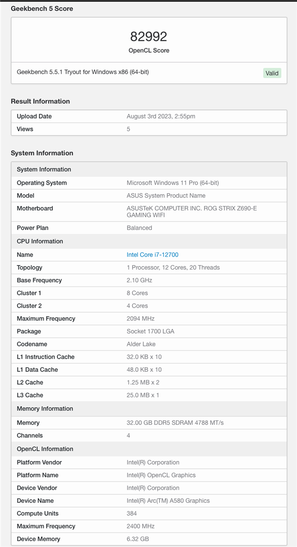 据悉,A580的Geekbench OpenCL跑分超过了8万分,也就是说,它的理论性能要超过RTX 3050。
