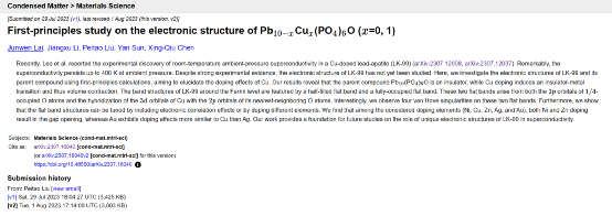 同一天,美国劳伦斯伯克利国家实验室(LBNL)的理论研究论文显示,对 LK-99 进行密度泛函理论计划,表明该材料存在一种特殊结构具有实现超导的潜力。[11~12]
