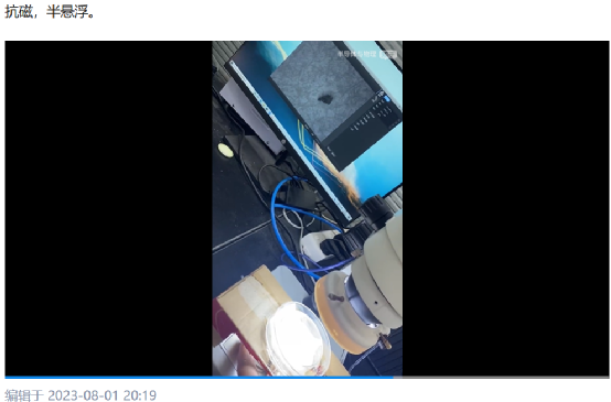 知乎用户“半导体与物理”更新了进展并上传了视频,同样表示具有论文中显示的抗磁性。[14]
