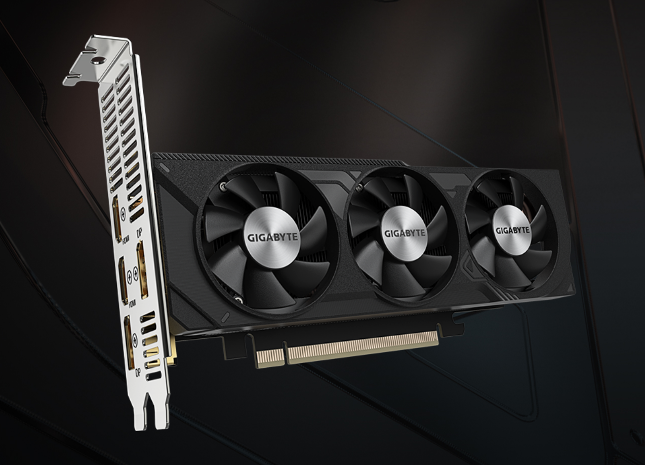 技嘉正式发布了半高式刀卡设计的“RTX 4060 OC Low Profile 8G”,只有常规显卡的一半高度,但是一字排开三风扇还是相当暴力。根据官方数据,它的高度只有40毫米,但长度依然有182毫米,厚度则是69毫米(双插槽),而且三个目测50厘米直径的风扇,将8针供电接口挤到了尾部。