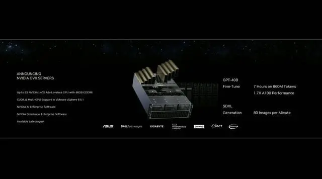 在L40S GPU的加持下,老黄又针对数据中心市场,推出了最多可搭载8张L40S的OVX服务器。
