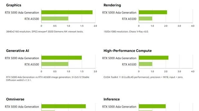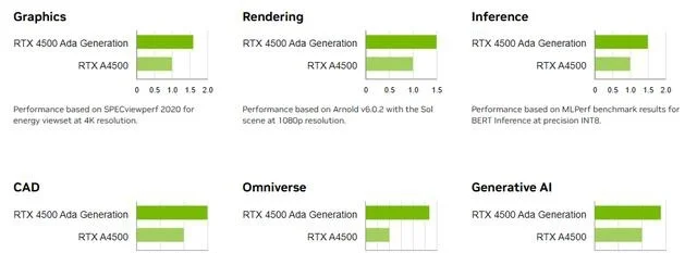 RTX 4500配备了24GB显存,7680个CUDA核心,240个Tensor核心,60个RT核心。