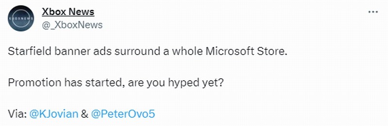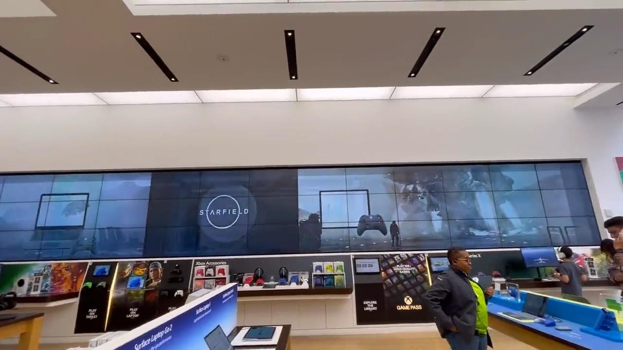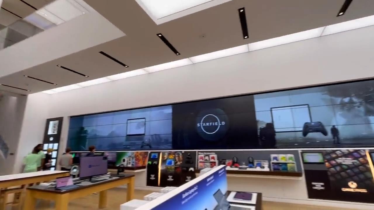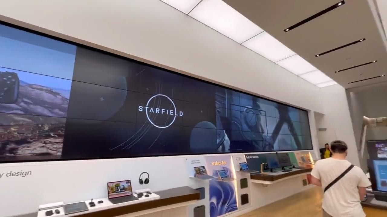 《星空》即将正式发售,其宣发活动也开始密集起来。近日推特博主Xbox News分享了一个视频,展示了微软实体店的《星空》广告。其横幅广告包围了整个微软商店,看起来非常壮观,你心动了吗?赶快来预购游戏吧!