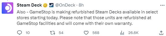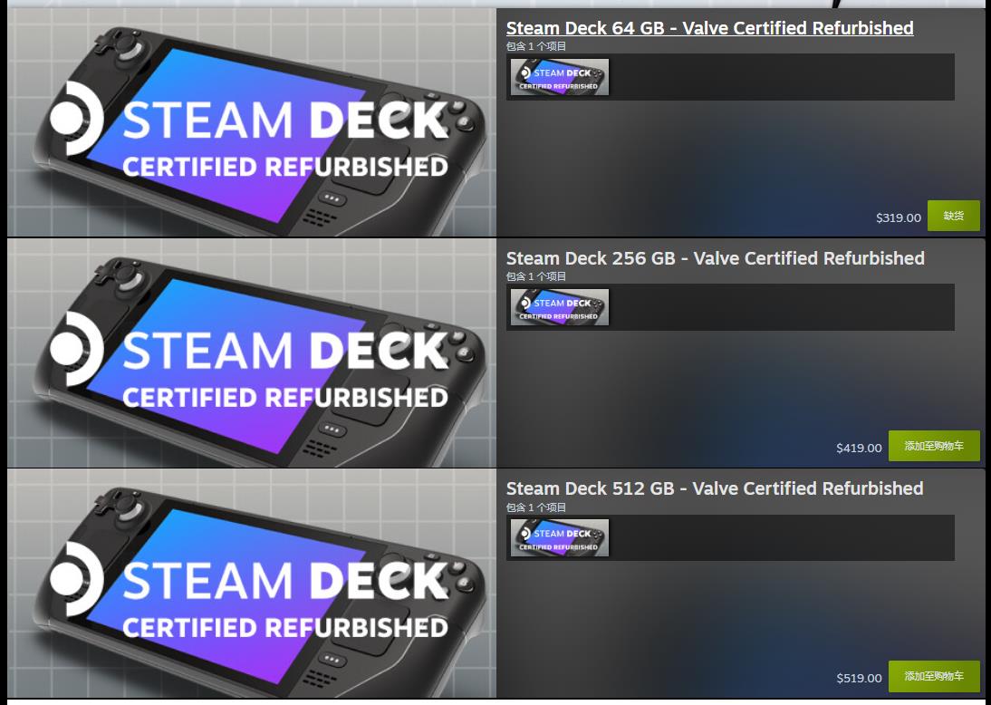 今日(8月9日),V社游戏掌机Steam Deck认证翻新版现已正式上线,据Steam Deck官方推特,知名游戏零售商GameStop也同时开始销售自行翻新的机器,感兴趣的玩家可以点击此处进入商店页面。