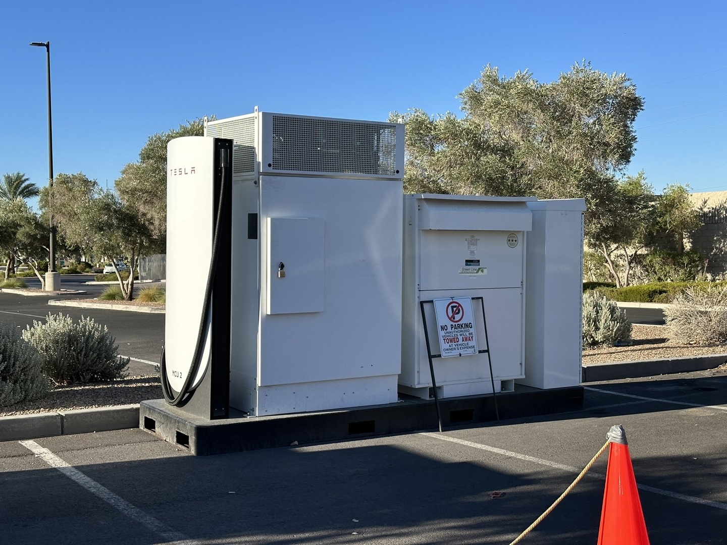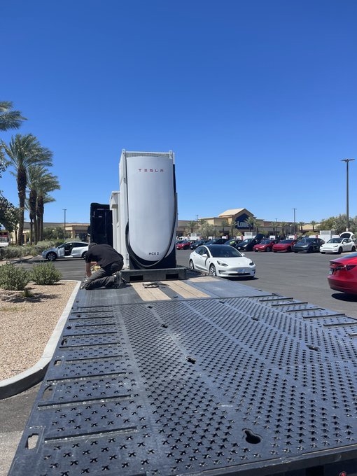 有意思的是,这款充电桩只在拉斯维加斯出现了几个小时,就被拆卸并搬走了,之所以如此,是因为这是特斯拉正在测试的一种移动超级充电桩,可以随时在不同的地点安装和使用,强化便利性。