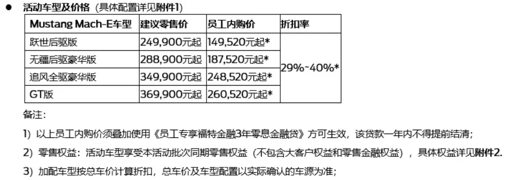 8月7日,福特江铃的员工李海收到内部邮件,凤凰网科技获取的内部邮件显示,福特中国面向内部员工推出电马Mustang Mach E 的内购活动,原价24.9万的跃世后驱版,内购价仅需14.9万元。
